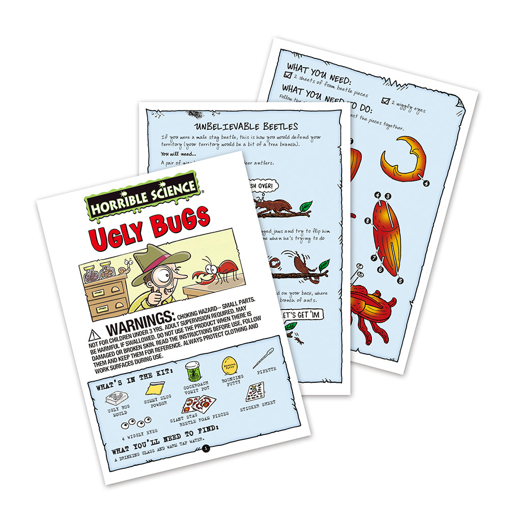 Mould a slimy slug, make a bouncing flea, build a giant stag beetle and check out a creepy cockroach in a tub of slimy cockroach vomit. Discover the disgusting things a cockroach does to your dinner, how bugs live without their heads and other foul facts.