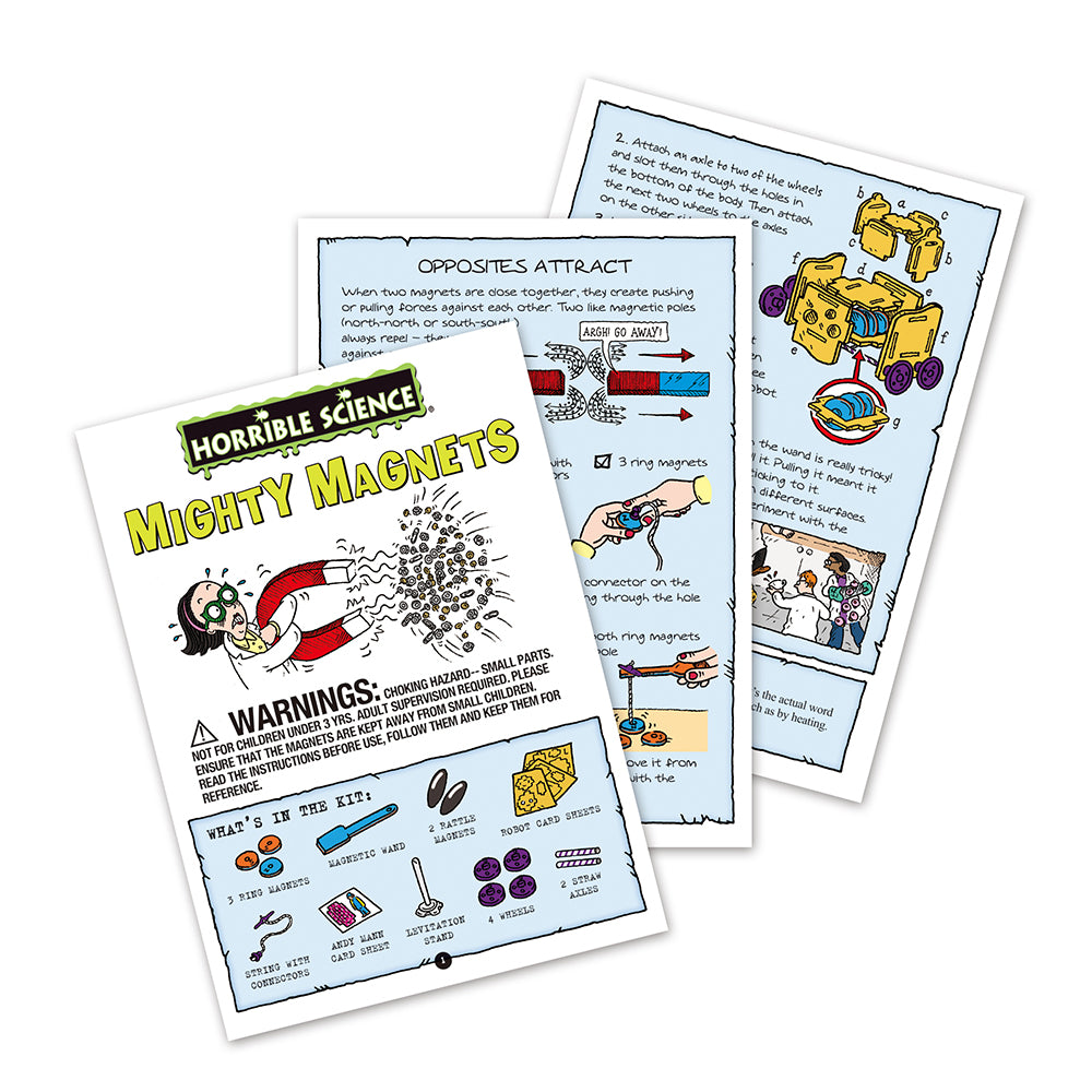 Build a rolling robot, perform levitation tricks and make a rattle magnet racket! Discover how mighty magnets can propel a full-sized train, how magnets are used to see inside the human body and other foul facts.