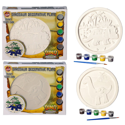 Paint your own decorative dinosaur plate. With 5 coloured paints and a brush.