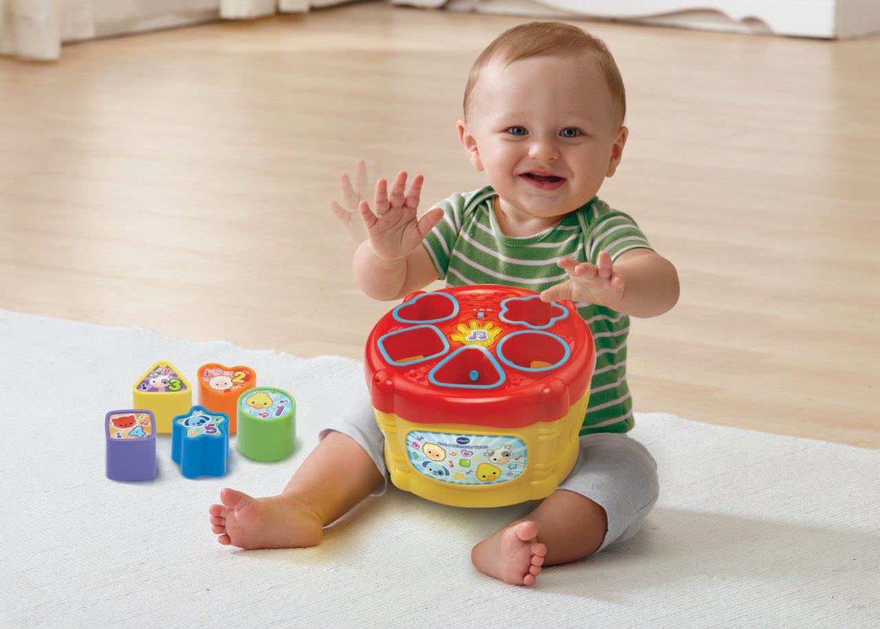 Drum and learn with the Sort & Discover Drum. Your little drummer will love dropping the 5 different shaped blocks into the correct opening to learn about shapes, numbers and animals. They can also tap on the lid to hear great drum sounds! Easily remove the lid to collect all of the shapes. Develop motor skills and imaginative play by tapping the drum and getting reactions! Inserting the shapes into the openings also strengthens fine motor skills and helps improve hand-eye coordination. With 3 happy sing-along songs, fun and engaging phrases and lots of jolly tunes, your child will always be entertained!