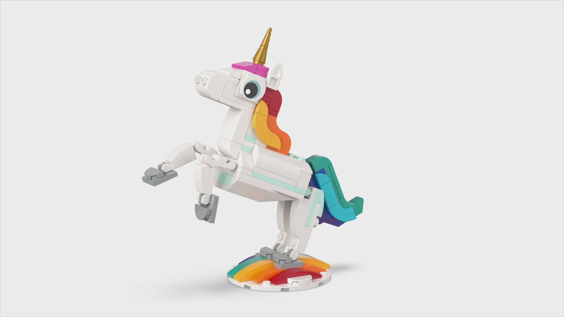 The mythical action never stops with 3 different magical creatures for little builders to assemble in this LEGO Creator 3 in 1 set. The playset features a rainbow unicorn toy with a golden horn, colourful tail and posable legs and hooves. It can be presented in 2 different positions: standing on 4 legs or reared up on its 2 hind legs for an iconic pose, and displayed on the set’s rainbow stand. When it's time for a magical transformation, kids can rebuild the set into a posable seahorse toy with a seabed stand, turn it into a posable magical peacock toy with a colourful tail, or even use the bricks to create other enchanting LEGO animals or creatures.
