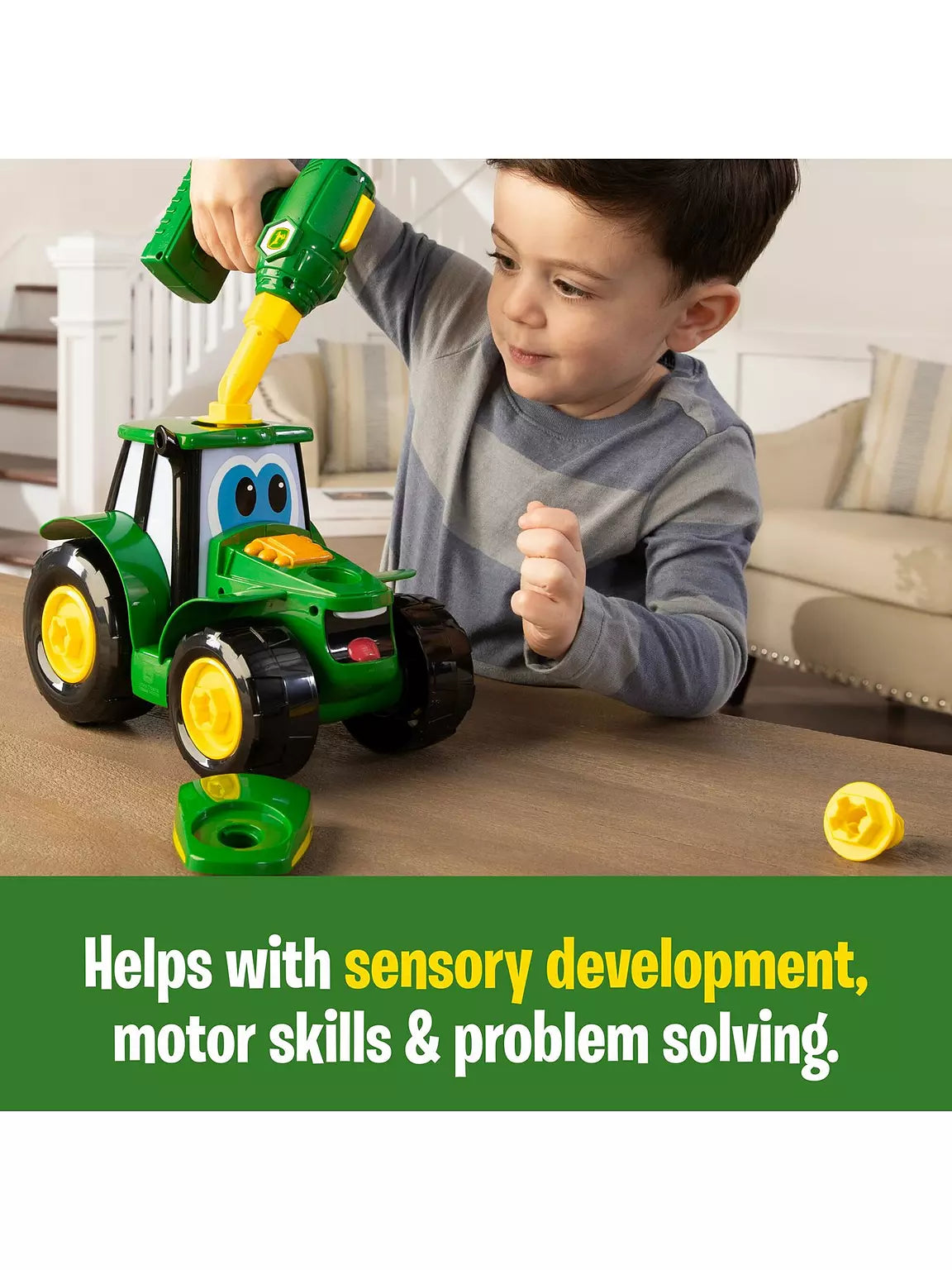 Put together, Johnny is a great push-along toy for lots of on-the-floor fun. ...But the fun doesn't stop there. This construcion toy comes with a drill and 2 bits that lets kids take Johnny apart and put him back together again!