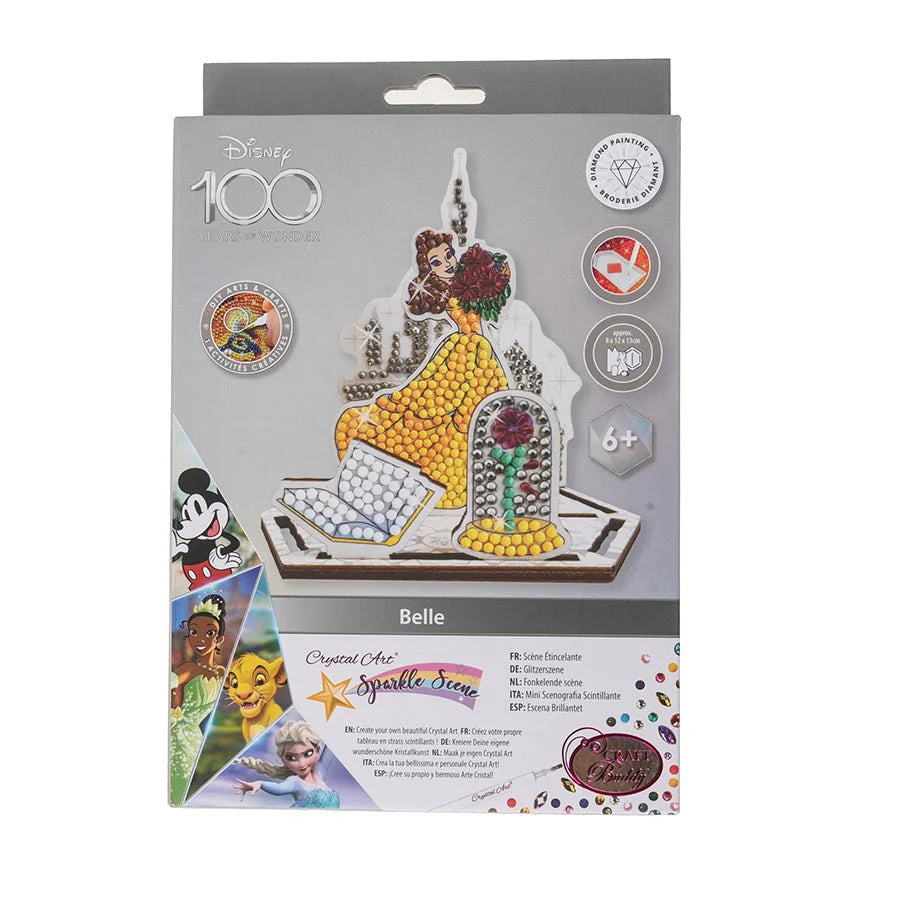 Introducing our very special "Belle" Crystal Art Disney 100 sparkle scene, a masterpiece of Disney creativity. This DIY handcraft is finished with sparkling crystals that glisten and shine. Perfect for adorning your desktop or pride of place on your shelf. It's a versatile and timeless addition to your home decor.