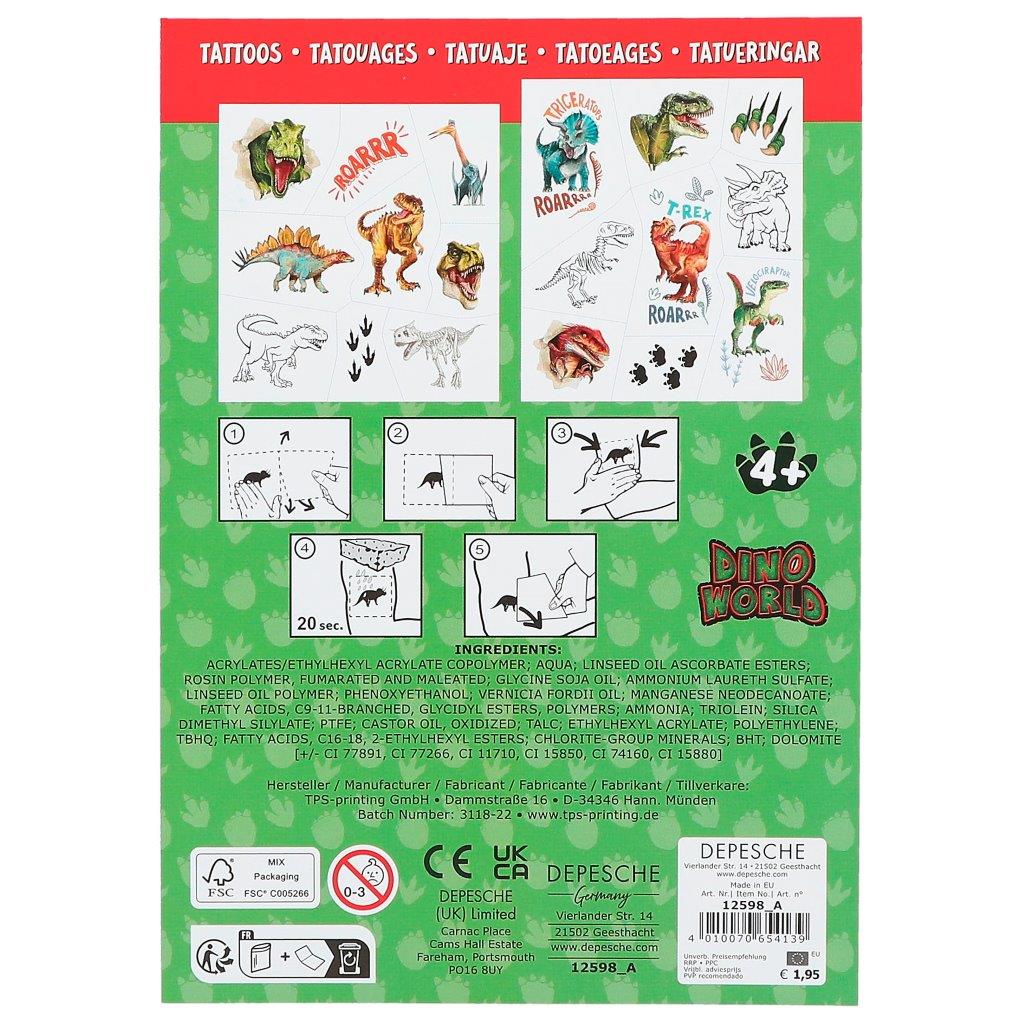These adhesive tattoos bring dinosaur fans lots of fun: 2 sheets full of cool motives from the dinosaur-strong prehistoric era. Easy to apply to the skin. From Dino World.