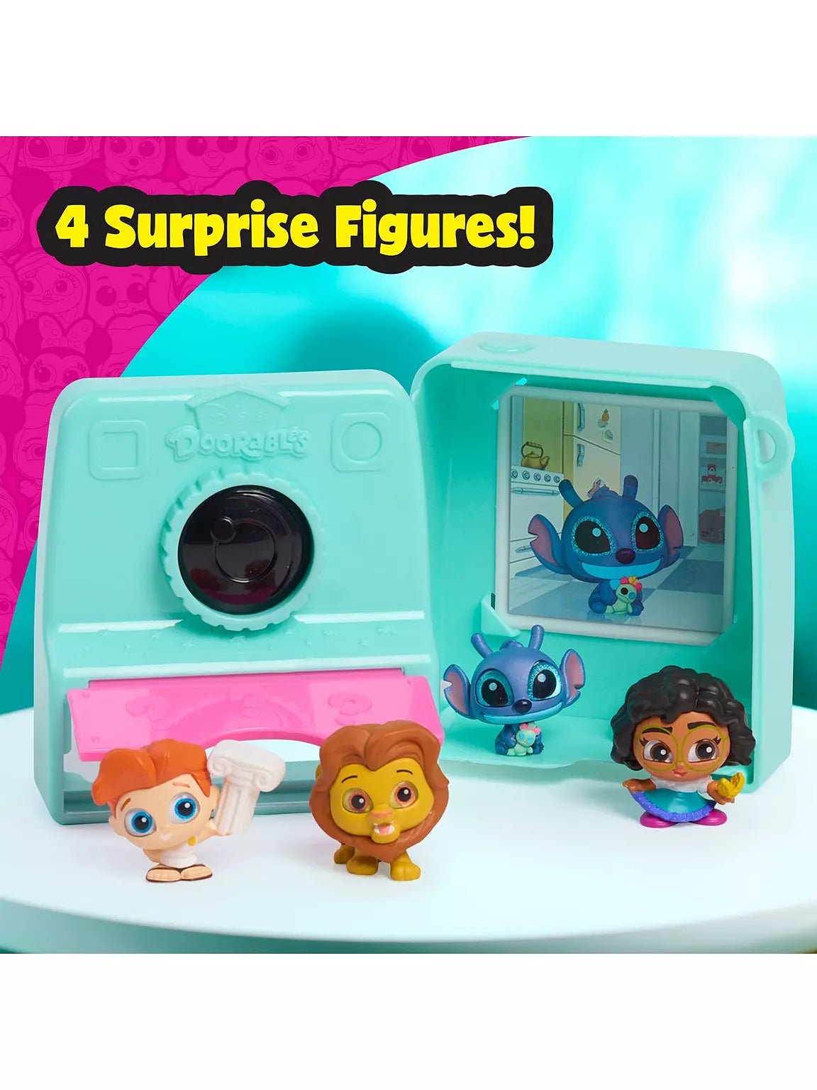 Behind every door, a surprise is in store with the Disney Doorables Lil' Moments Collection Peek. To unbox figures and a collector photo, open the camera door. Pull out a strip of 4 connected bags. Each strip contains 2 special Doorables figures in 1 of 2 sizes - both with Doorables signature style and glittery eyes. 1.5-inch figures depict classic characters kids know and love - like Disney Stitch. All large figures feature a point of articulation for dynamic poses. Smaller, .65-inch 'moments' figures give a glimpse into the past. For example, find Disney Lady as a sweet puppy.