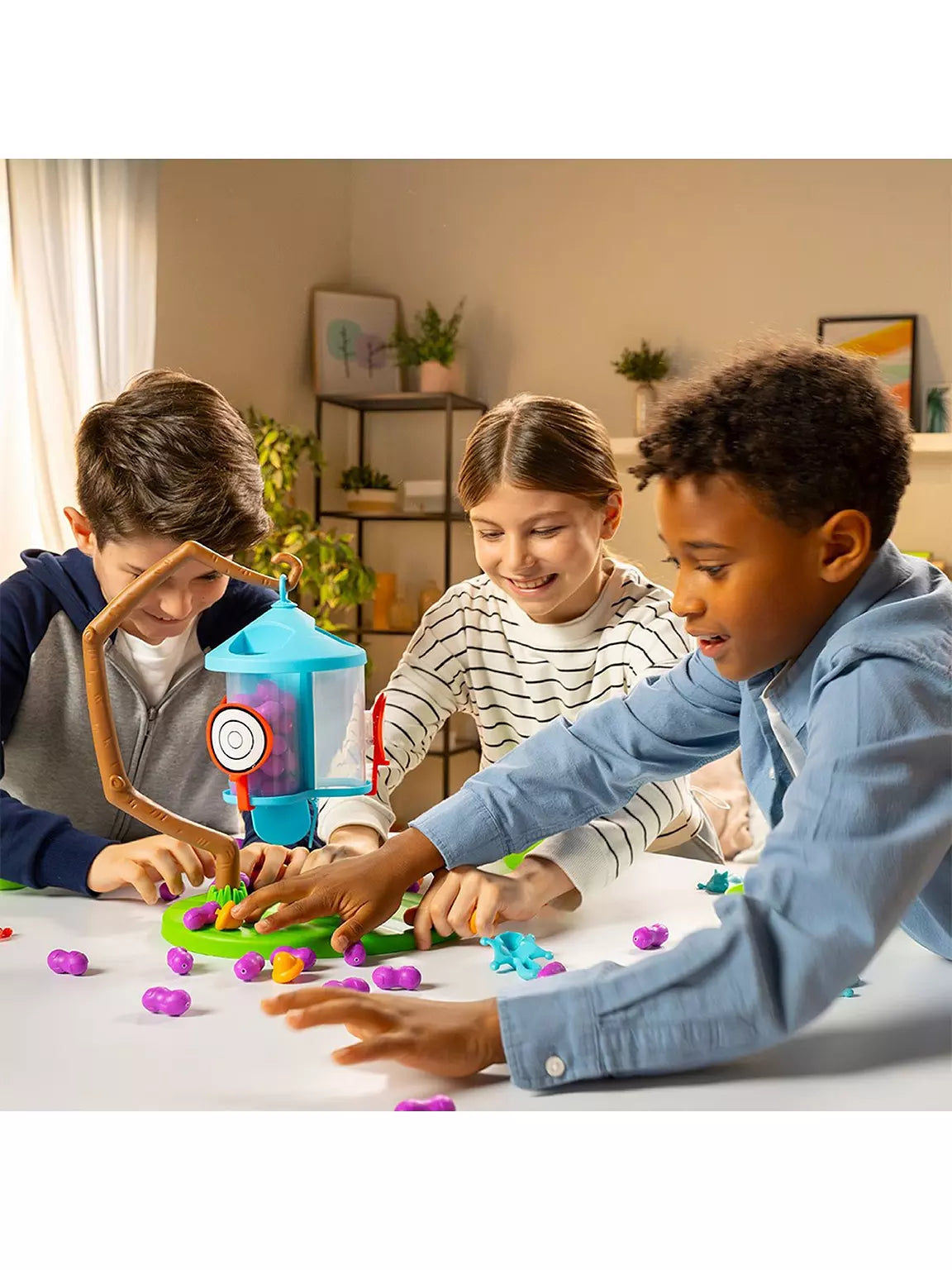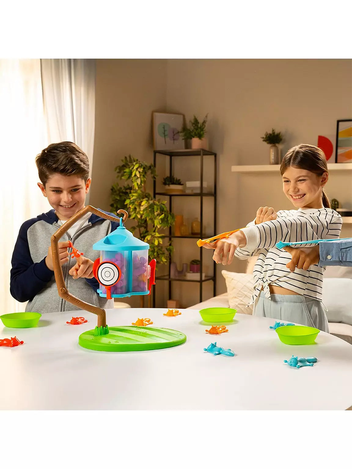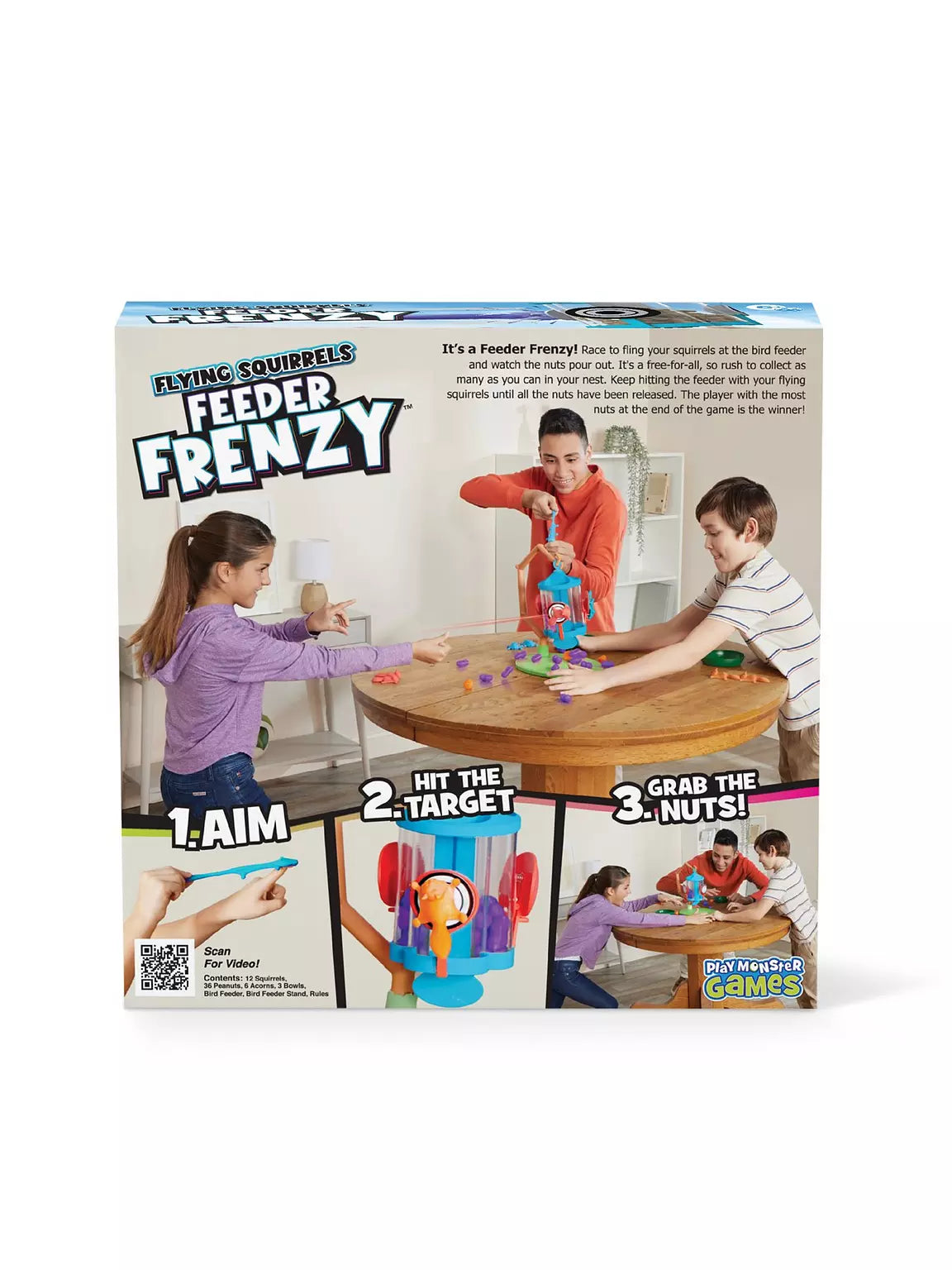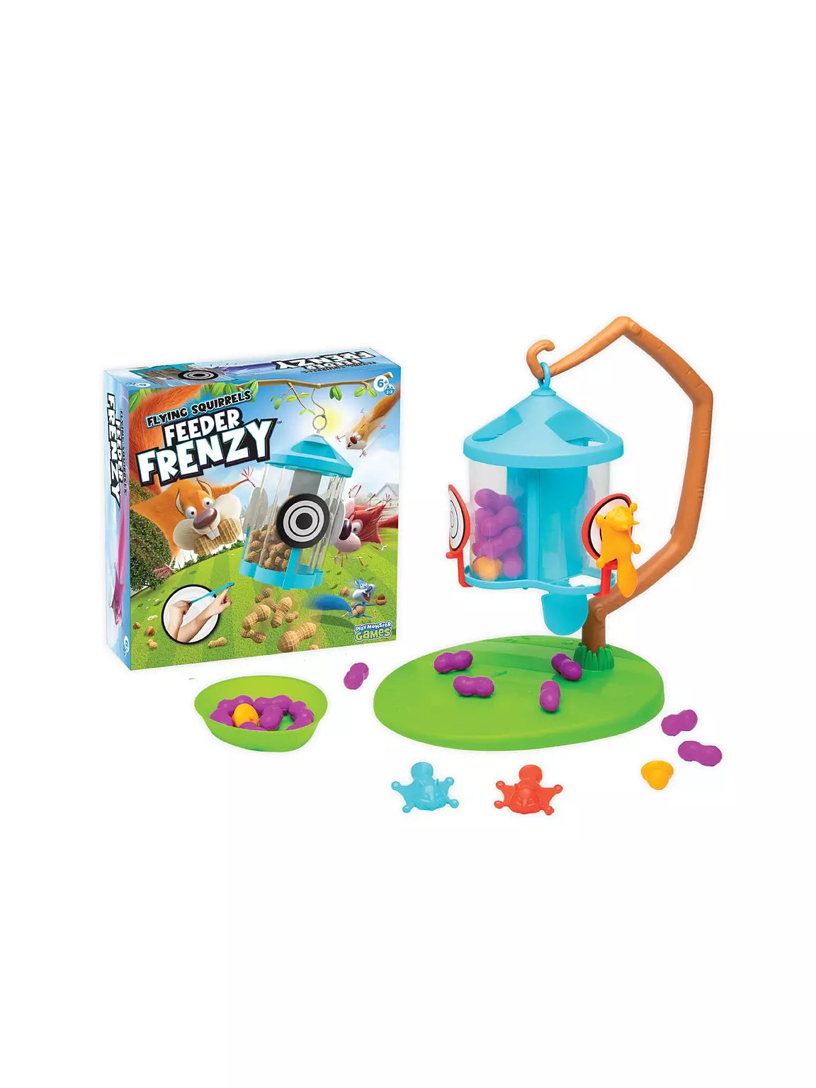 Get ready for a Feeder Frenzy! Race to fling your squirrels at the birdfeeder in the centre of the table. Hit the targets to release the nuts. Then it's a free-for-all for everyone to grab the nuts that pour out of the feeder back to your nest. Keep hitting the feeder with your flying squirrels until all the nuts are gone. The nuttiest squirrel at the end of the game is the winner! Now refill the feeder to start the fun all over again! For 2 to 3 players ages 6 and up.