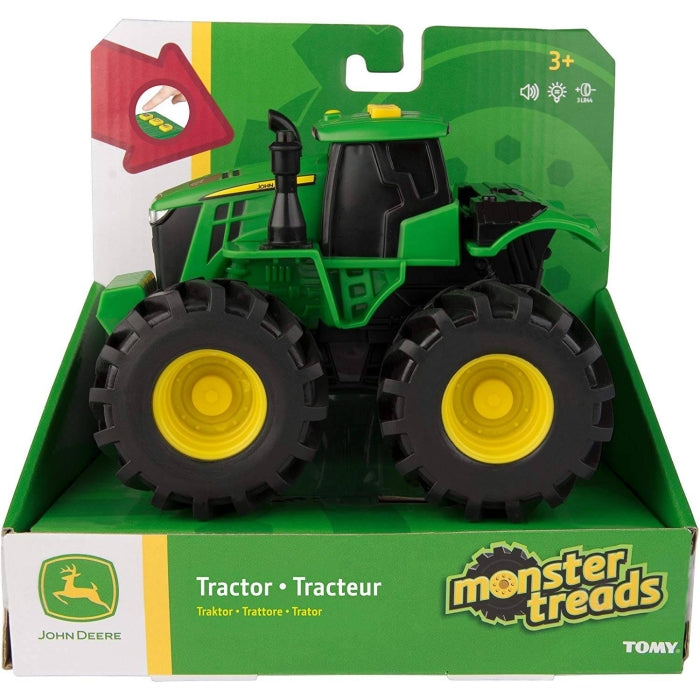 Make your mark on the landscape with the John Deere Monster Treads Lights and Sounds Tractor!