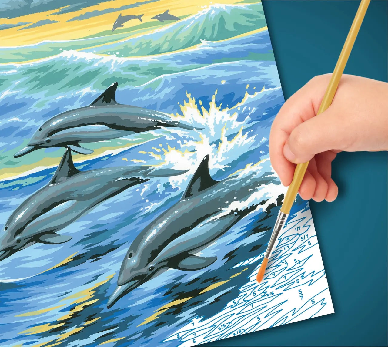 This Junior painting By Numbers craft features magnificent Dolphins design.