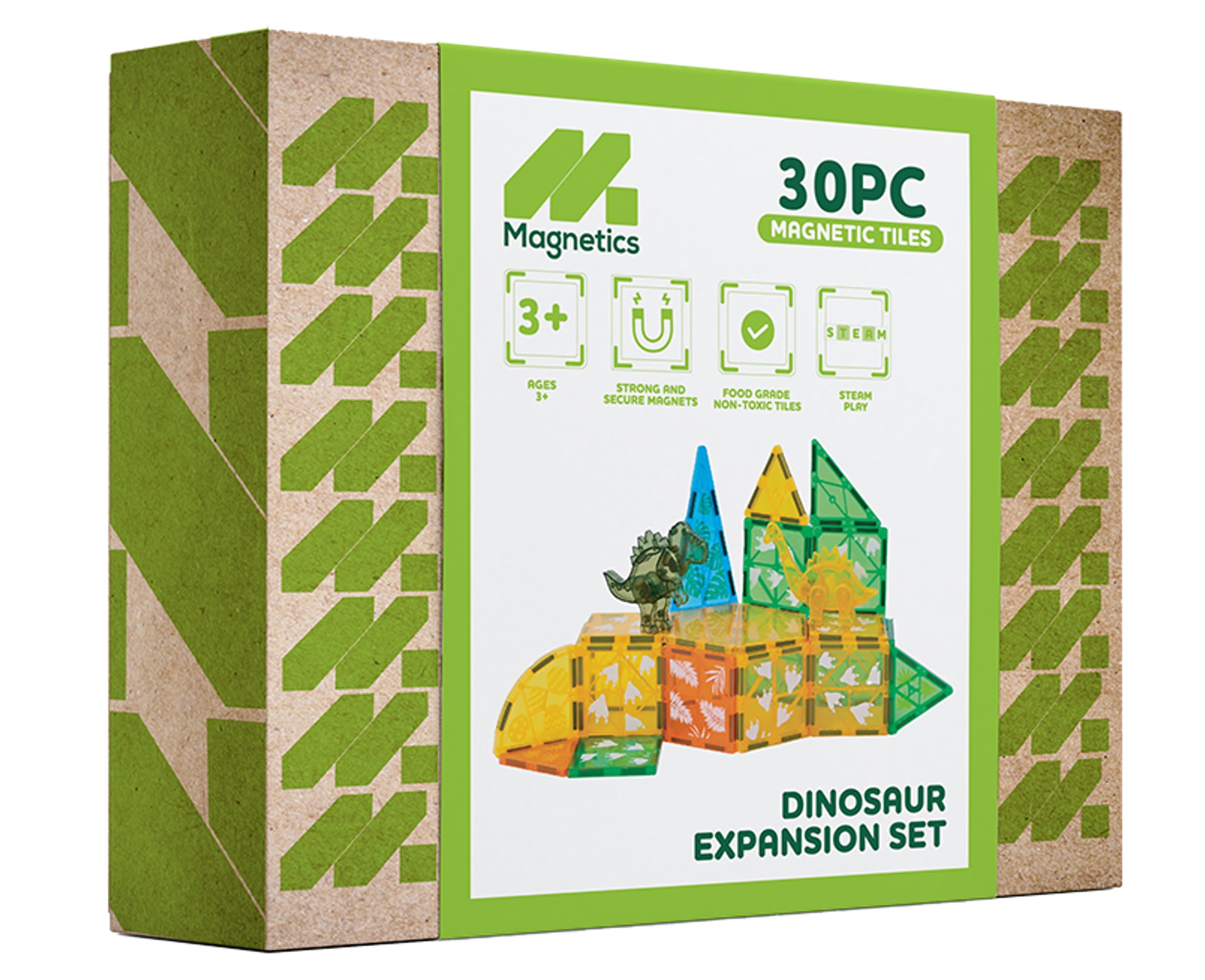 - BUILD WITH DINOSAURS: This 30-piece magnetic tile set features dinosaur designs and themed pieces that spark curiosity and imagination. Kids can create prehistoric scenes, habitats, and custom builds using easy-to-connect tiles.