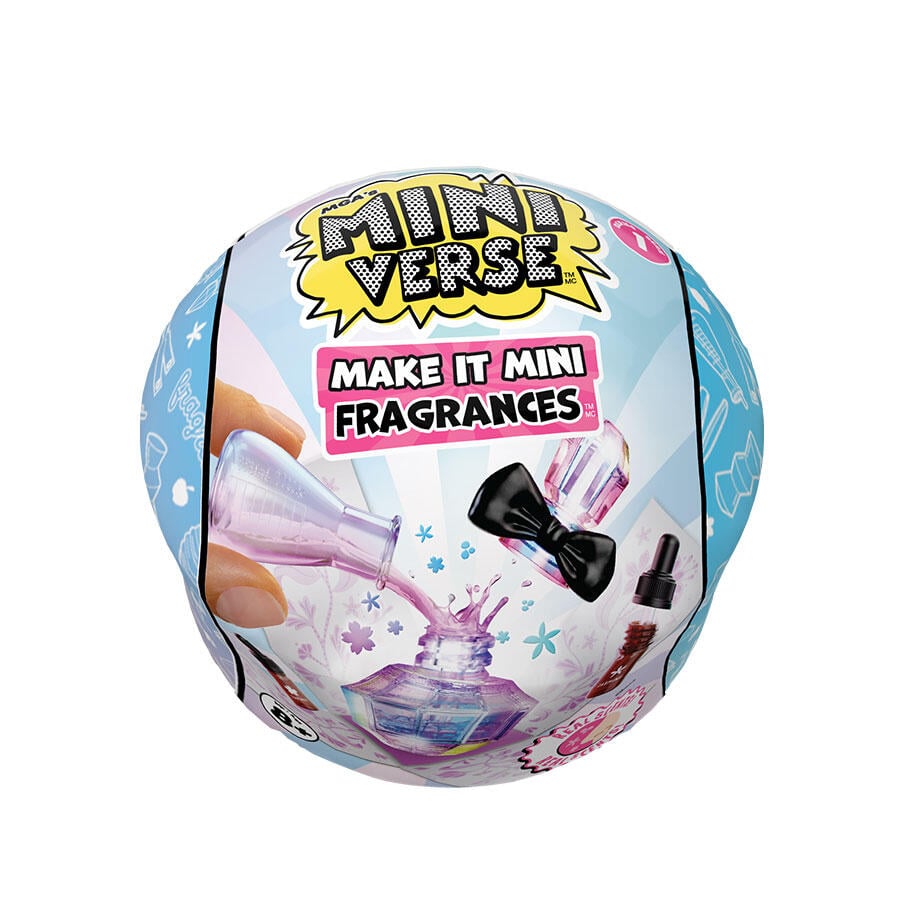 Create your own fragrances with MGA's Miniverse Make It Mini Fragrances! An exciting surprise awaits in each sphere when you unbox your favorite fragrance items in mini edition. Create your own minis with real functions, and when you're done, you can transform the capsule into a beautiful display case to show off your creations. Each package contains unique items from which you can create your own fragrance collector's item. Collect them all! Ages 8 and up.