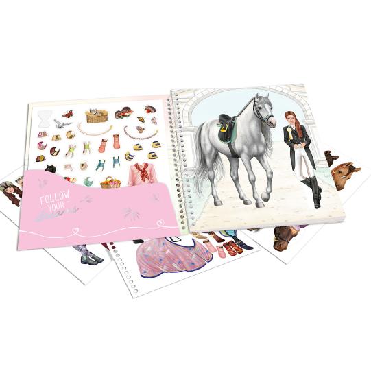Super beautiful riding outfits and everything a horse's heart desires: In the sticker and colouring book Dress Me Up by Miss Melody, you can put together great looks for riders and their hoofed friends with 11 sticker sheets on 24 pages.