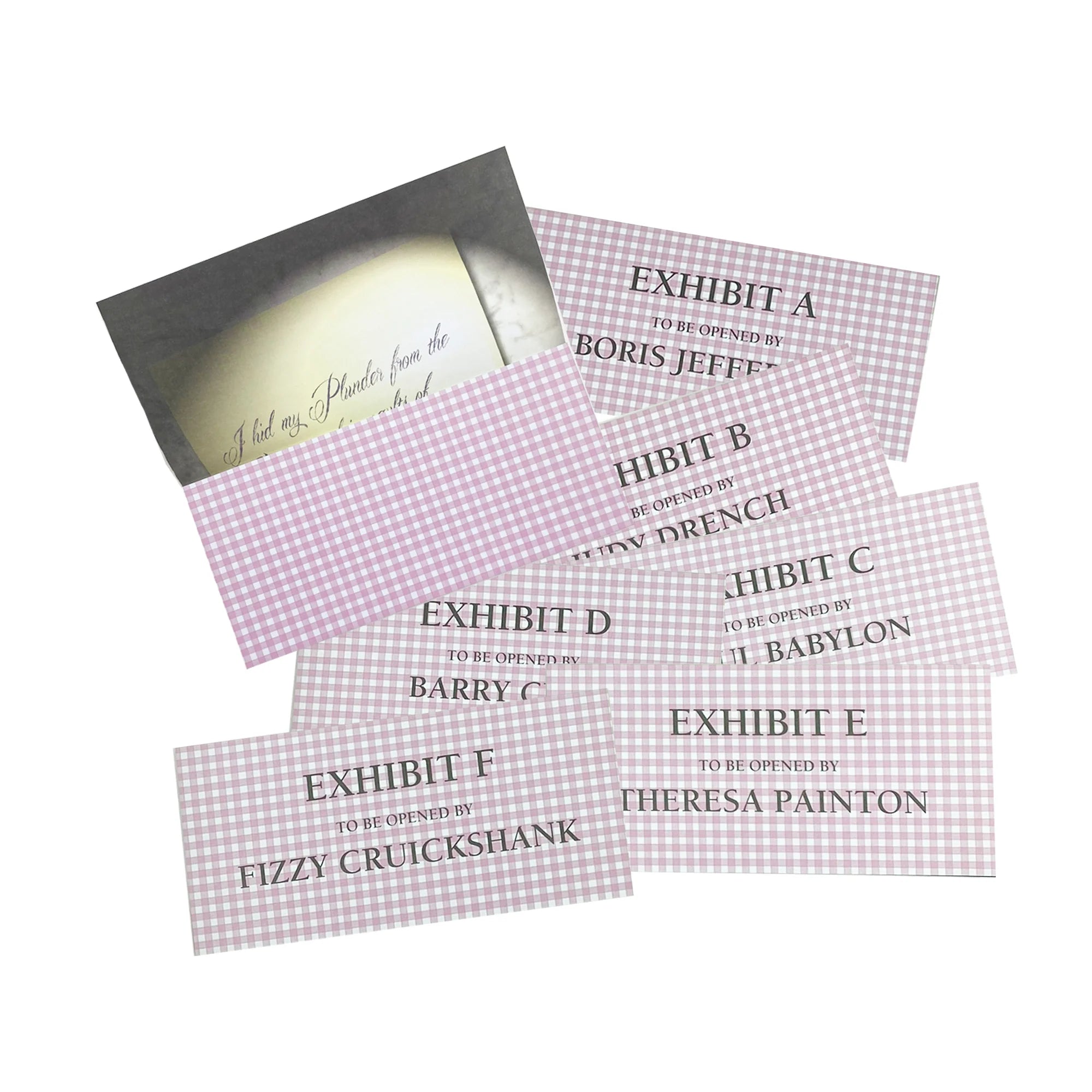 - Party invitations with envelops for each character