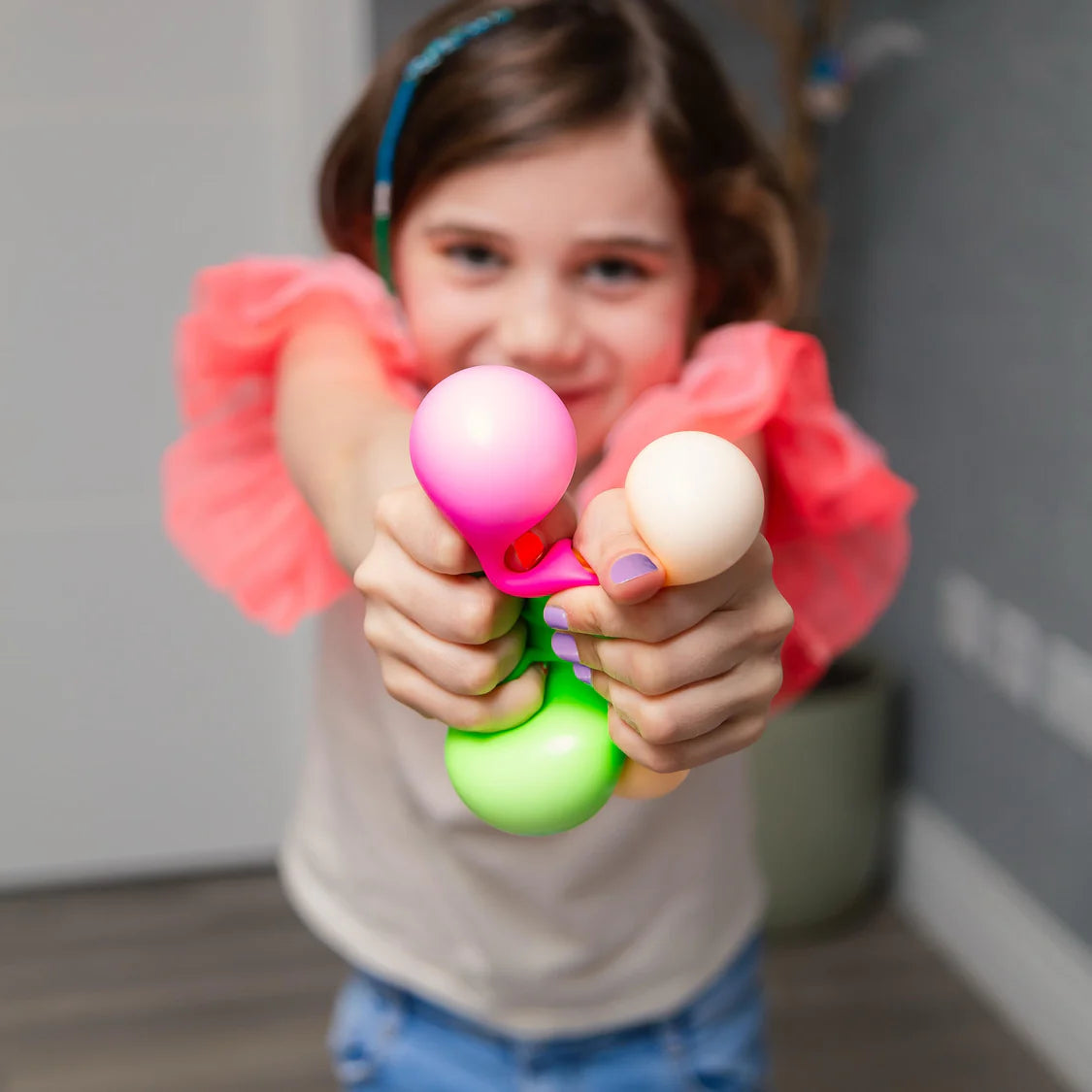 Pack of three brightly coloured squishy balls. These vibrant neon spheres make fantastic fidget toys, as each is super squashy and a very satisfying tactile experience. They make a great set of stress balls and are the perfect way to keep idle hands busy.