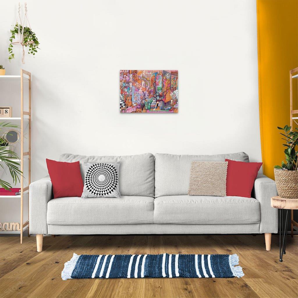 Life away from home brings a sense of freedom, fun and adventure, and this puzzle perfectly captures that mood. Four girls share this house, which is full-to-bursting with clothing, books, musical instruments, posters and other decorative accessories. Add to that the suitcases, bags, notebooks, crockery - and a cat - and we have a busy, muddled but welcoming home-from-home. Unwind, relax, and create some calming, mindful moments as you assemble this colourful and quirky puzzle. Product designed and developed in the UK
